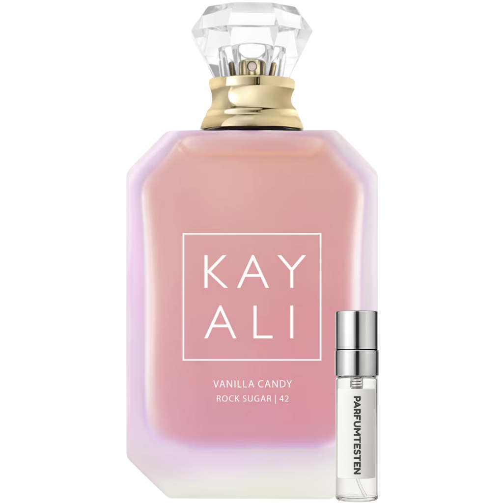 Kayali – Candy Rock Sugar 42 ist ein süßer, gourmandiger Duft mit Zuckerwatte, Vanille, Himbeere und weichen Moschusnoten. Er wirkt verspielt, warm und einhüllend. Jetzt als Parfümprobe testen.