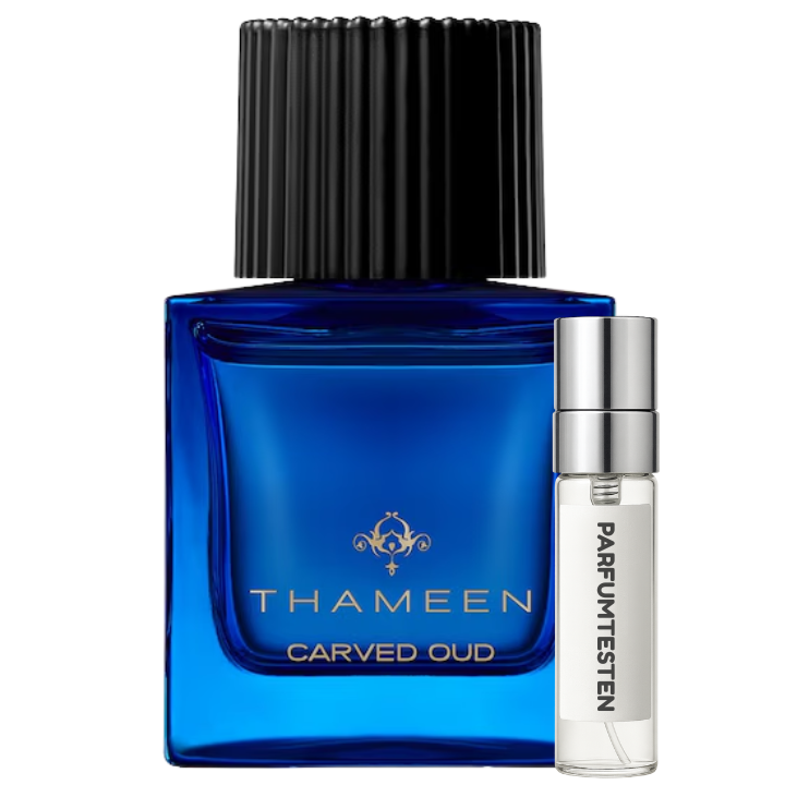 Thameen – Carved Oud Extrait de Parfum kombiniert würzigen Zimt und Zedernholz mit edlem Oud, Patchouli und warmem Amber. Der Duft wirkt luxuriös, tief und opulent. Jetzt als Parfümprobe testen.