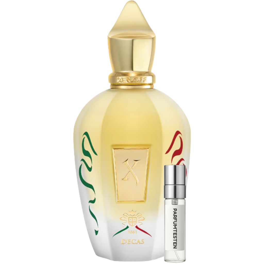 Xerjoff - Decas ist ein warmer, leicht würziger Duft mit Noten von Tuberose, Tabak und Benzoe. Er wirkt elegant, cremig und einladend. Jetzt als Parfümprobe testen.