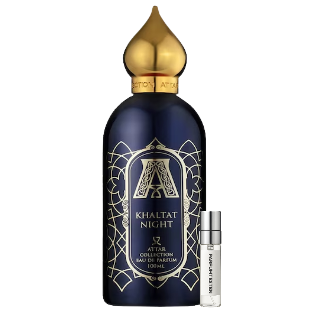 Attar Collection – Khaltat Night ist ein orientalisch-süßer Duft mit Karamell, Vanille, Rose, Moschus und Amber. Er wirkt intensiv, sinnlich und verführerisch. Jetzt als Parfümprobe testen.