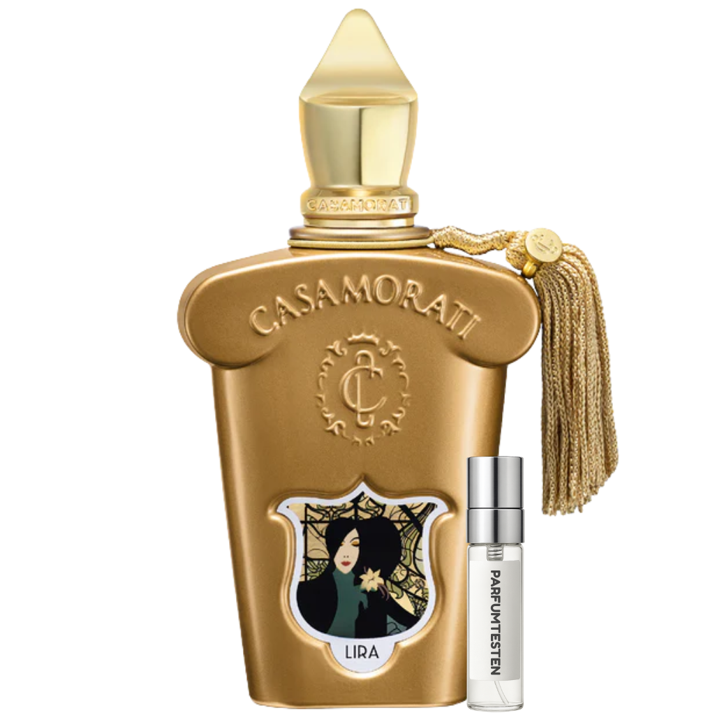Xerjoff Casamorati – Lira ist ein verführerisch-gourmandiger Duft mit Karamell, Vanille, Zitrusnoten, Zimt und sanften Blüten. Er wirkt süß, warm und einladend. Jetzt als Parfümprobe testen.