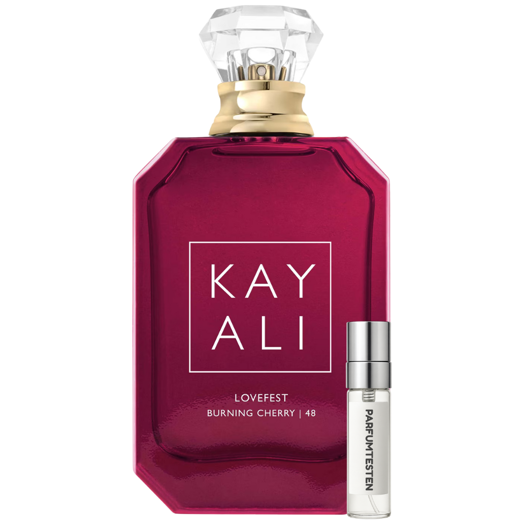 Kayali – Lovefest Burning Cherry ist ein sinnlicher, fruchtig-holziger Duft mit Schwarzkirsche, Himbeere, Praline, Patchouli und Guajakholz. Er wirkt warm, verführerisch und intensiv. Jetzt als Parfümprobe testen.