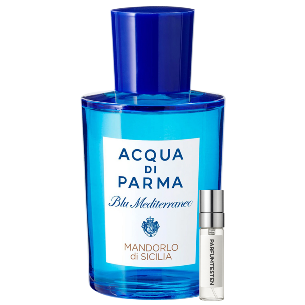 Acqua di Parma – Mandorlo di Sicilia (Blu Mediterraneo) Eau de Toilette ist ein gourmandig-frischer Duft mit grünem Mandelakkord, Anis, Orangenblüte, Jasmin, Vanille, Moschus und Zedernholz. Er wirkt cremig, warm und zugleich mediterran-frisch. Jetzt als Parfümprobe testen.