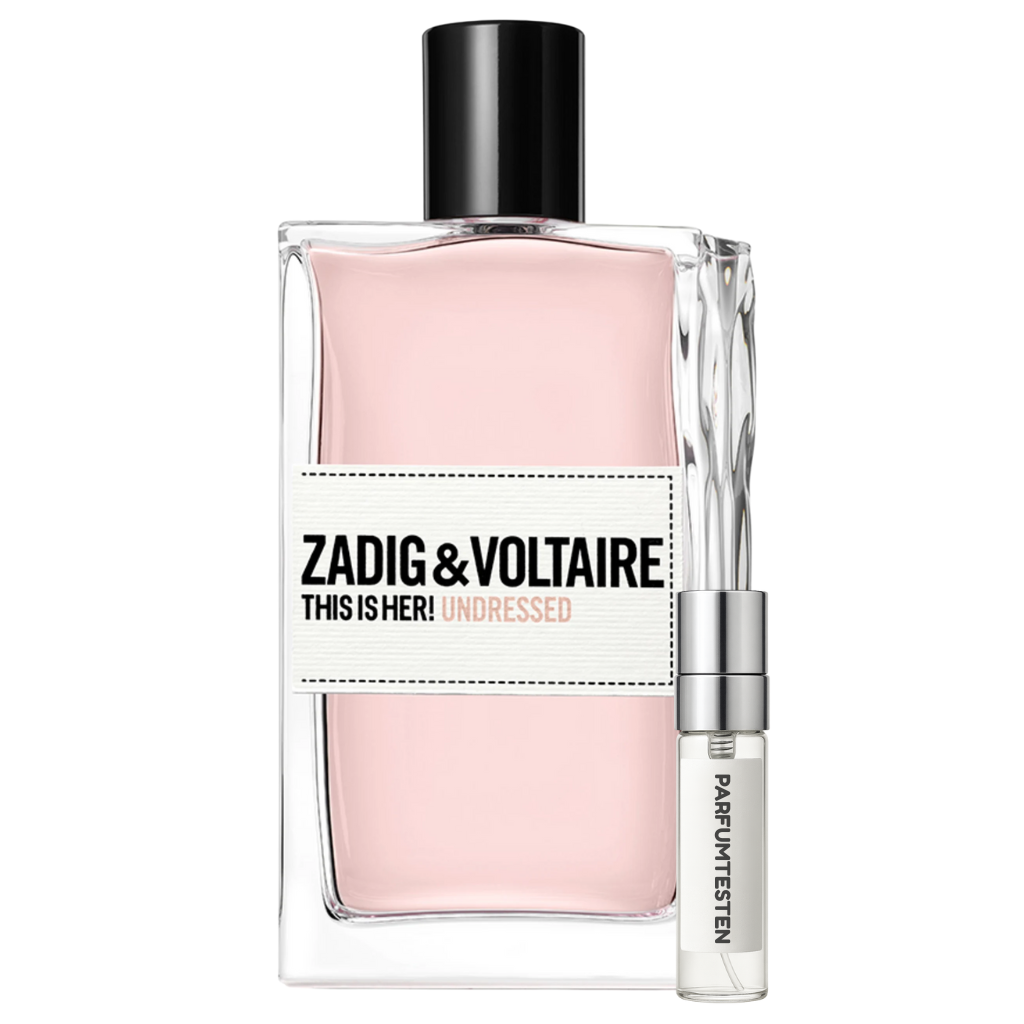 Zadig & Voltaire – This Is Her! Undressed Eau de Parfum ist ein leichter, moderner Duft mit Orangenblüte, Ylang-Ylang und warmem Sandelholz. Er wirkt frisch, sinnlich und unkompliziert tragbar. Jetzt als Parfümprobe testen.