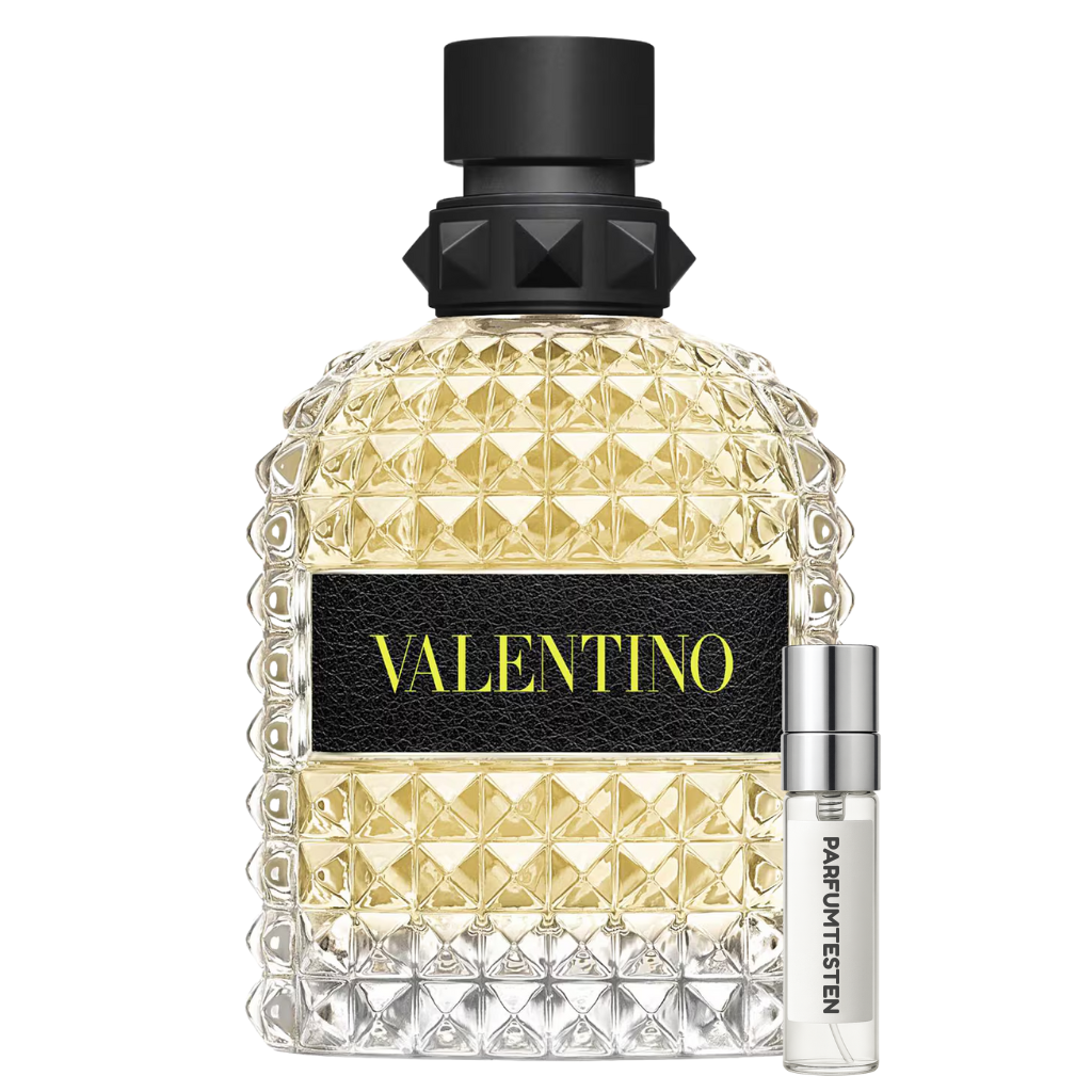 Valentino – Uomo Born in Roma Yellow Dream ist eine warme, würzig-orientalische Variante mit Zitrone, Zimt, Vanille, Amber und Moschus. Er wirkt intensiv, modern und maskulin. Jetzt als Parfümprobe testen.