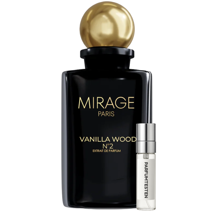 Mirage – Vanilla Wood Eau de Parfum ist ein warmer, gourmandig-holziger Duft mit Vanille, Sandelholz, Amber und Moschus. Er wirkt cremig, sinnlich und elegant. Jetzt Duftprobe bestellen.