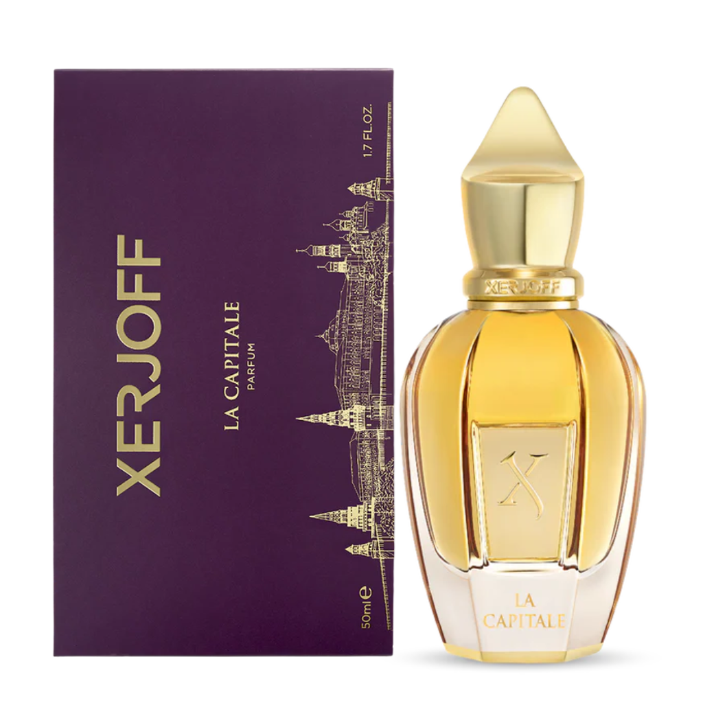 Xerjoff - La Capitale ist ein luxuriöser, gourmandig-fruchtiger Duft mit Erdbeere, Pfirsich, Amber, Karamell, Rose, Vanille und Leder. Er wirkt opulent, süß und verführerisch.