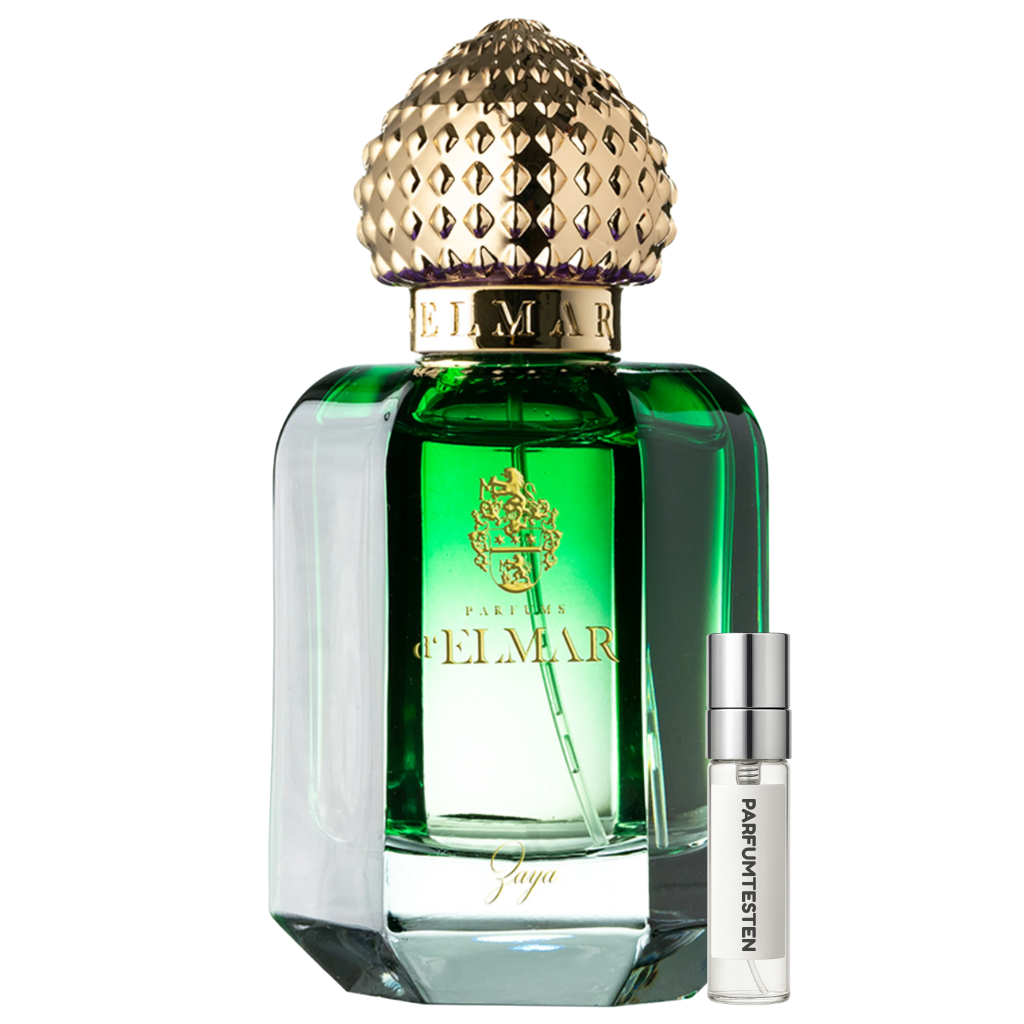 Parfums d'Elmar Zaya ist ein intensiver, orientalisch-süßer Duft mit würzigen, floralen und gourmandigen Noten. Er wirkt sinnlich, luxuriös und verführerisch. Jetzt als Parfümprobe testen.